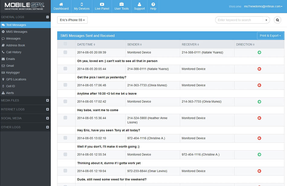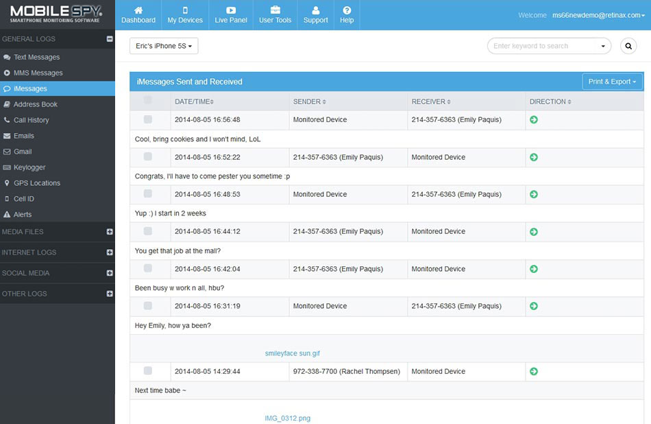 Multimedia Messenger Services – Mobile Spy also lets you monitor multimedia messages sent and received on Android, iPhone and BlackBerry devices.