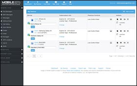 The multiple-device page on the control panel also lets you view important information about all of your devices at a glance. The page displays the device name, ON/OFF status of WiFi, Bluetooth, and GPS, view battery life, carrier signal and storage usage. Quick links next to each device lead you to view the specific details of the phone, uninstall remotely, restore the factory settings, and backup/restore commands.